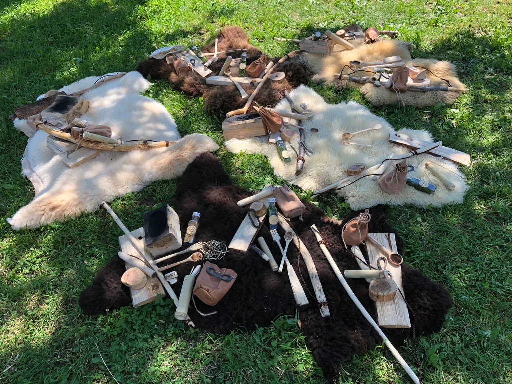Elementare Techniken wie Feuer machen, Schutzbau, Herstellung von Werkzeug- und Behelfsgegenständen aus natürlichen Materialien.